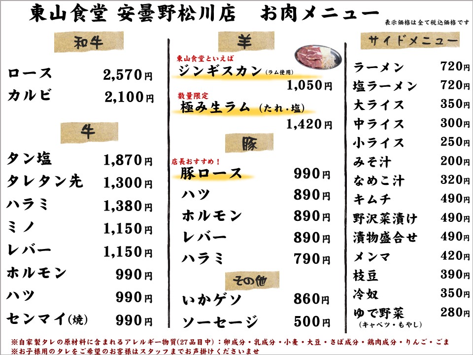 ※平日限定ランチ定食は安曇野松川店と箕輪店の2店舗限定です